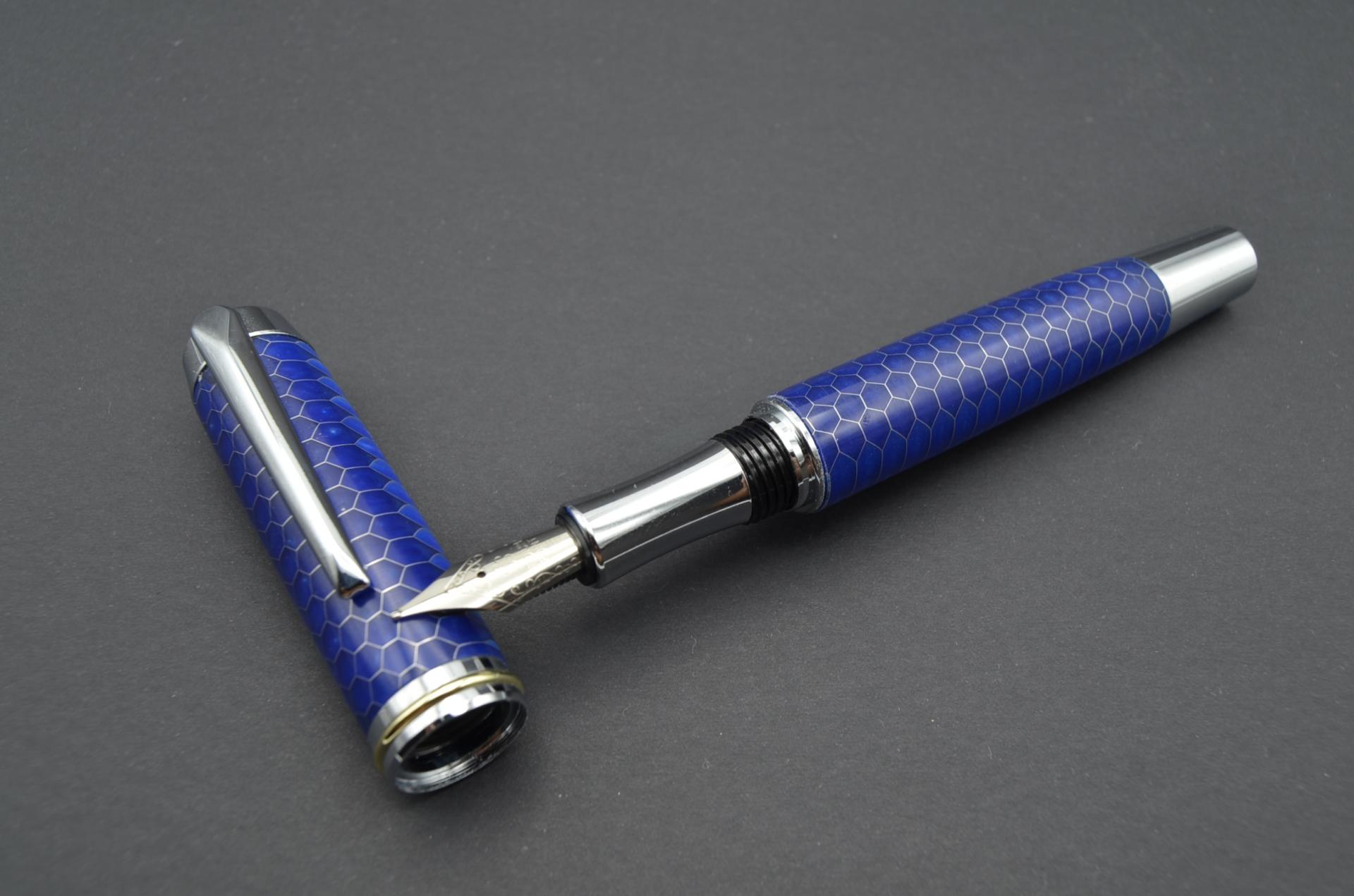 Estilográfica torneada a mano utilizando resina acrílica y panal de aluminio