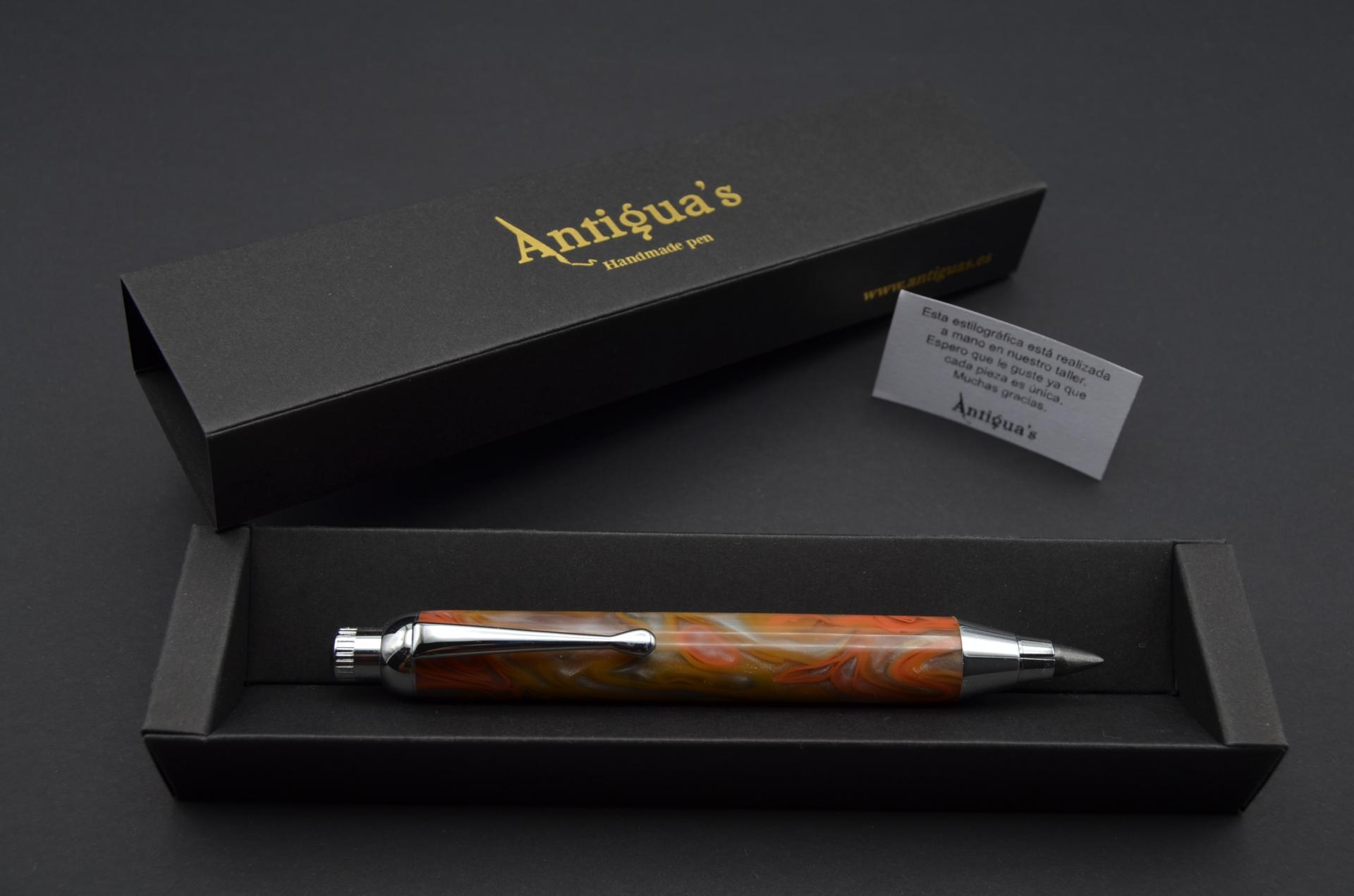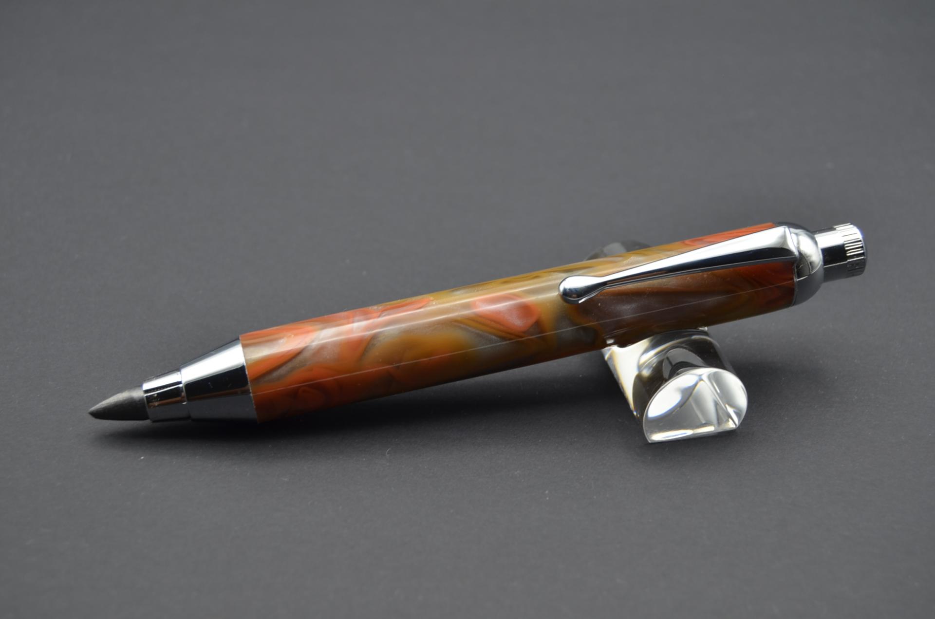 Portaminas torneado a mano con resina acrílica, sistema de apriete Collet, incorpora un grafito de 5,6 milímetros,