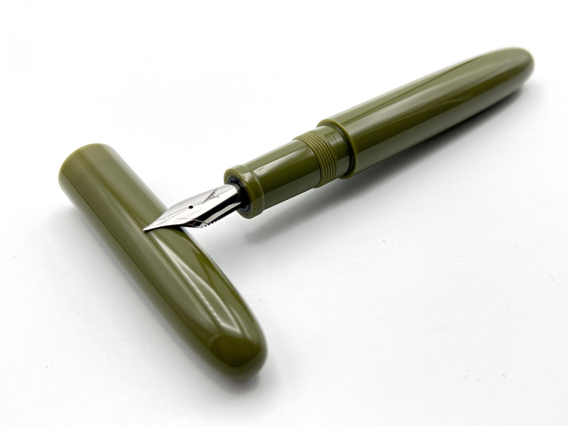 Estilográfica torneada a mano, lleva instalado un plumín JOWO #6 de acero pulido.