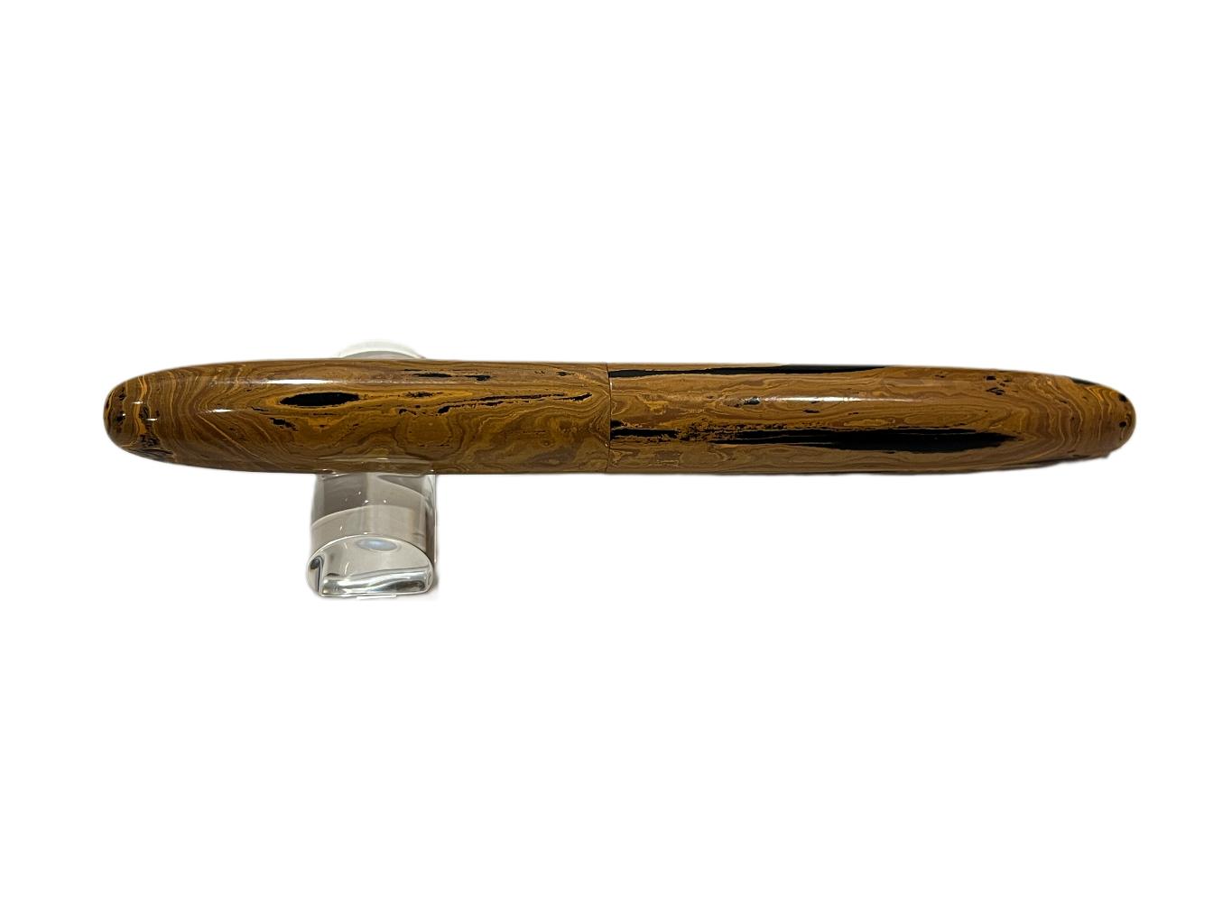 Estilográfica torneada a mano, el material es ebonita, lleva instalado un plumín JOWO #6 de acero pulido.