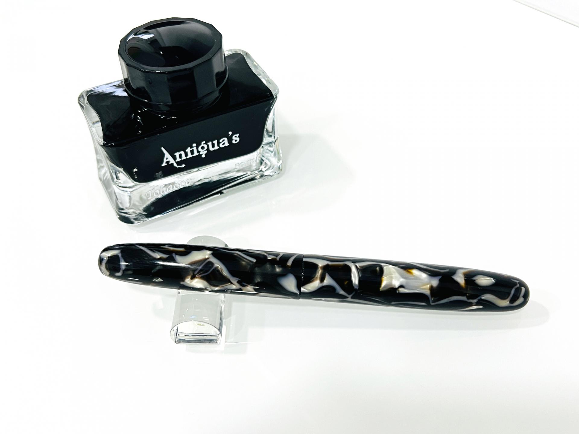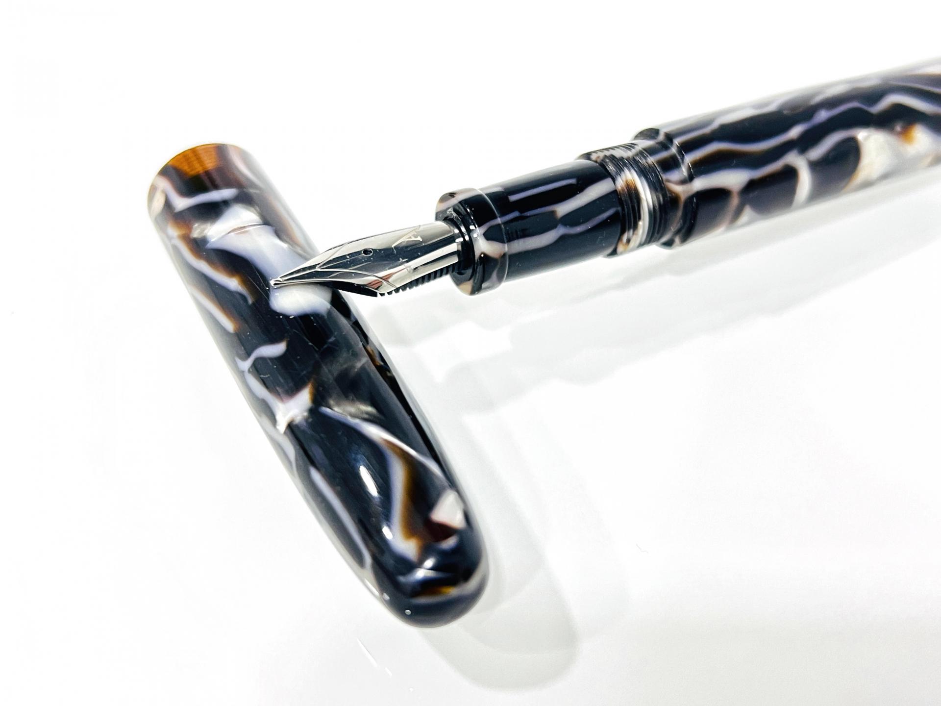 Estilográfica torneada a mano, el material es acetato de celulosa, lleva instalado un plumín JOWO #6 de acero pulido.
