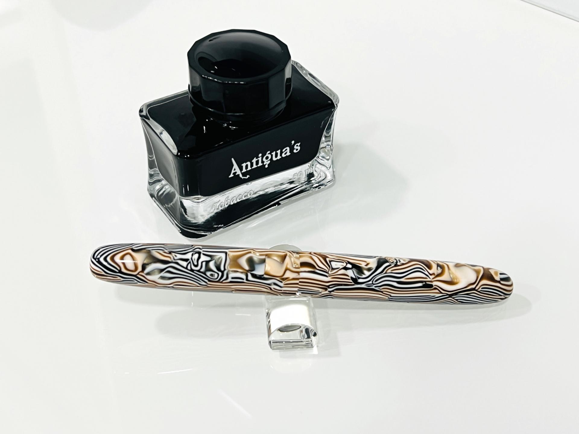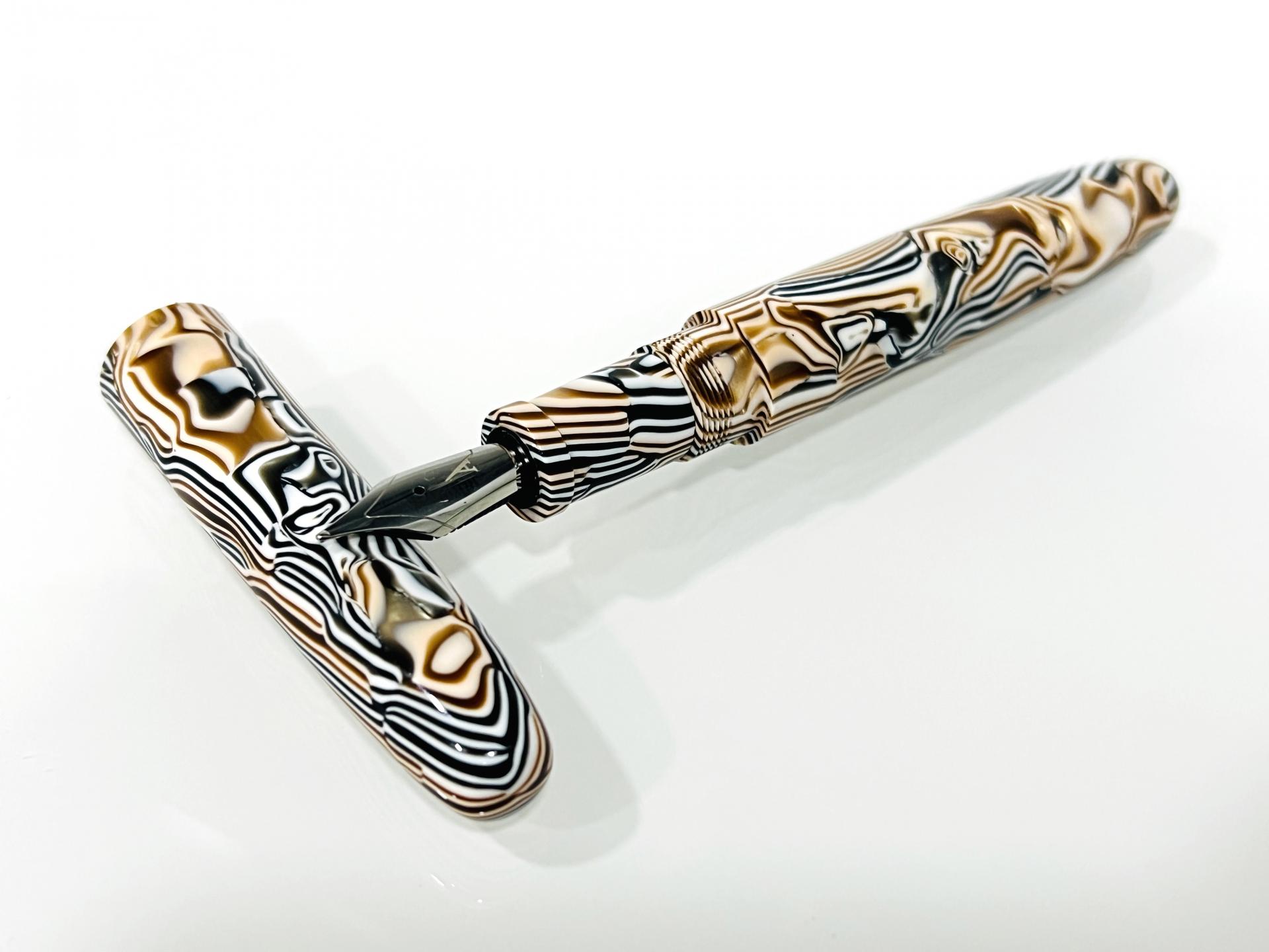 Estilográfica torneada a mano, el material es acetato de celulosa, lleva instalado un plumín JOWO #6 de acero pulido.