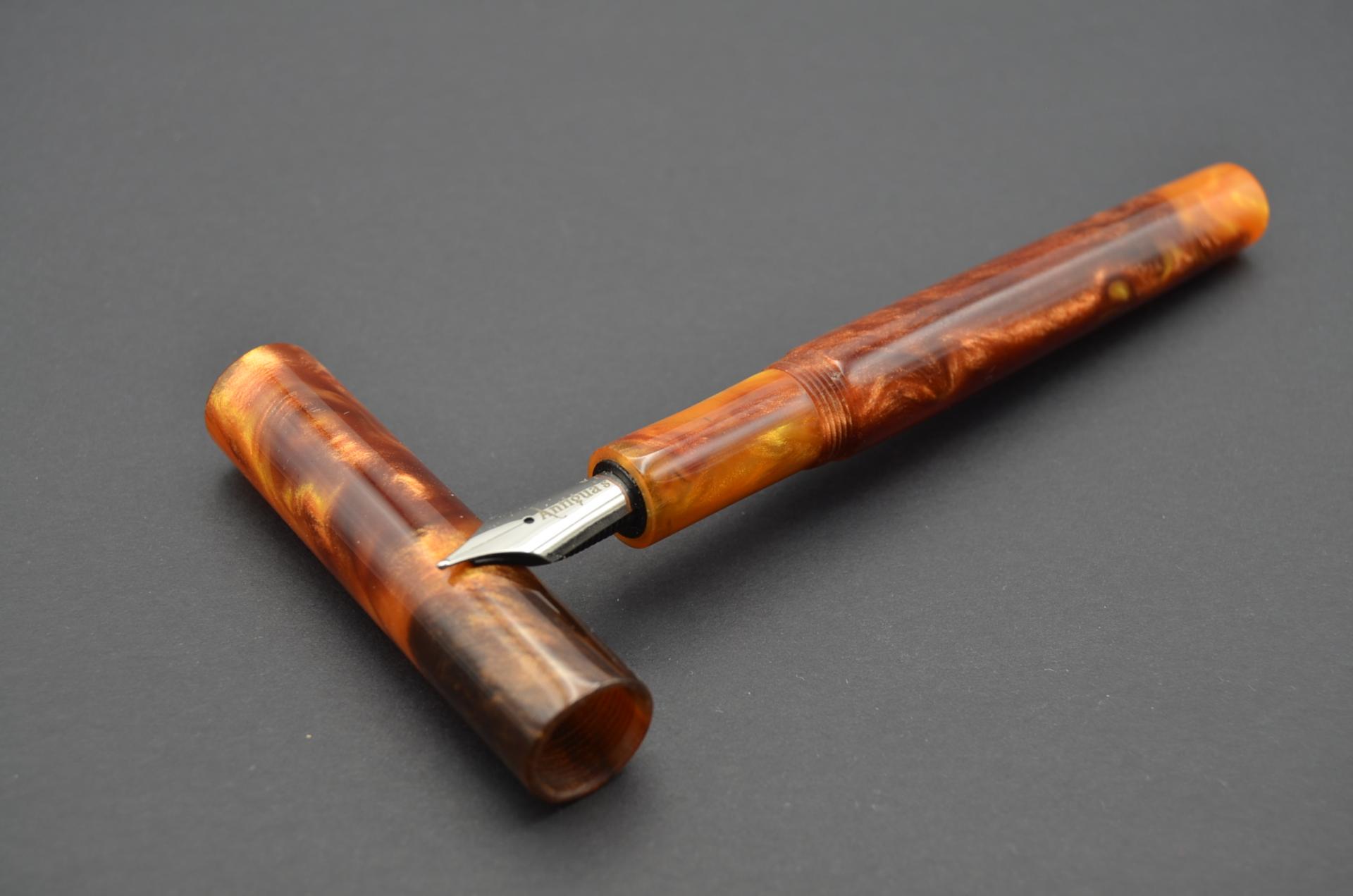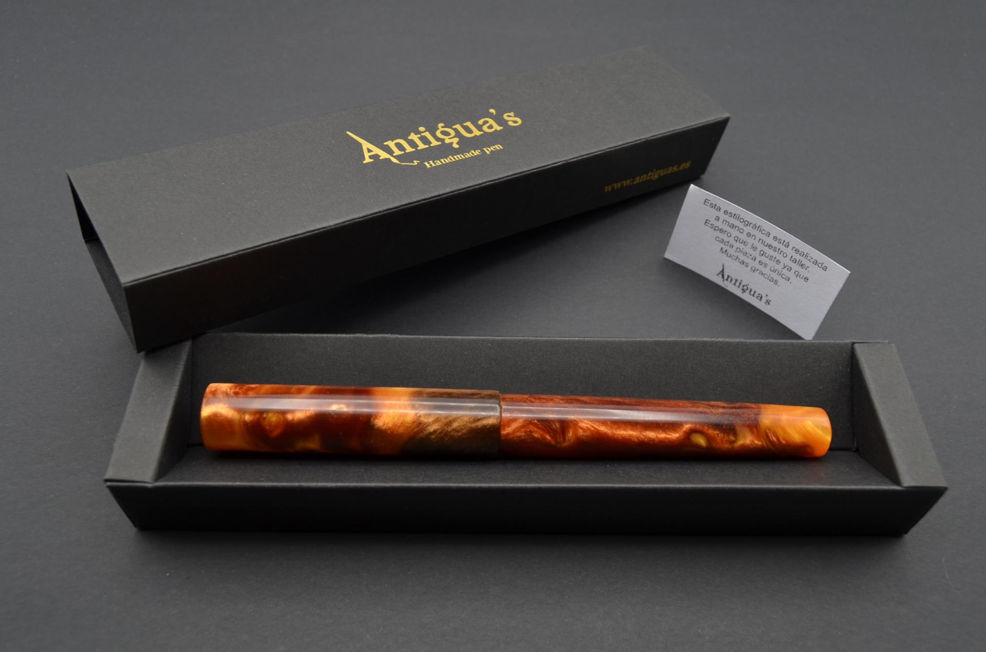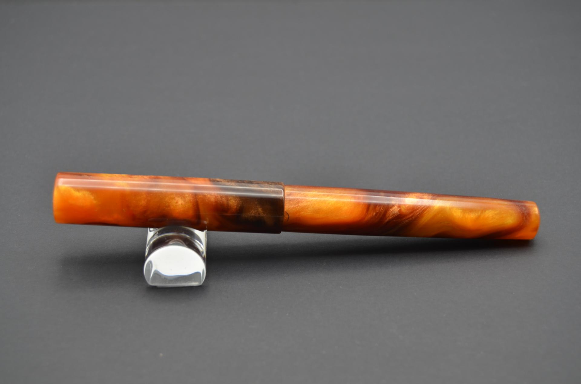 Modelo Hydra torneada a mano con resina acrilica, lleva instalado un plumín BOCK #6 de acero pulido.