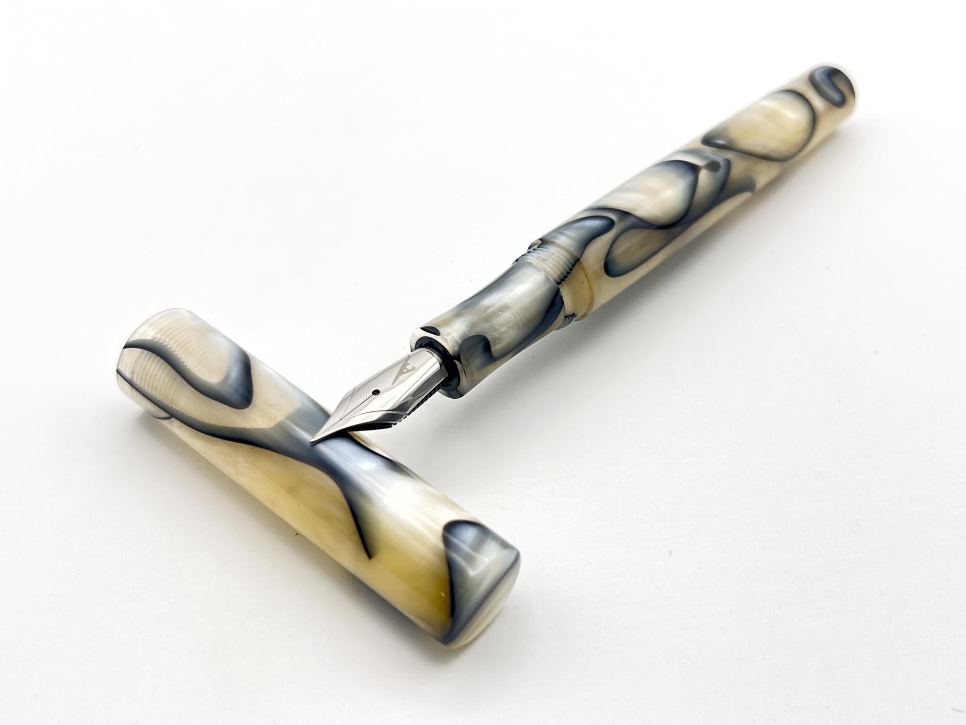 Modelo Hydra torneada a mano con resina acrilica, lleva instalado un plumín JOWO #6 de acero pulido.