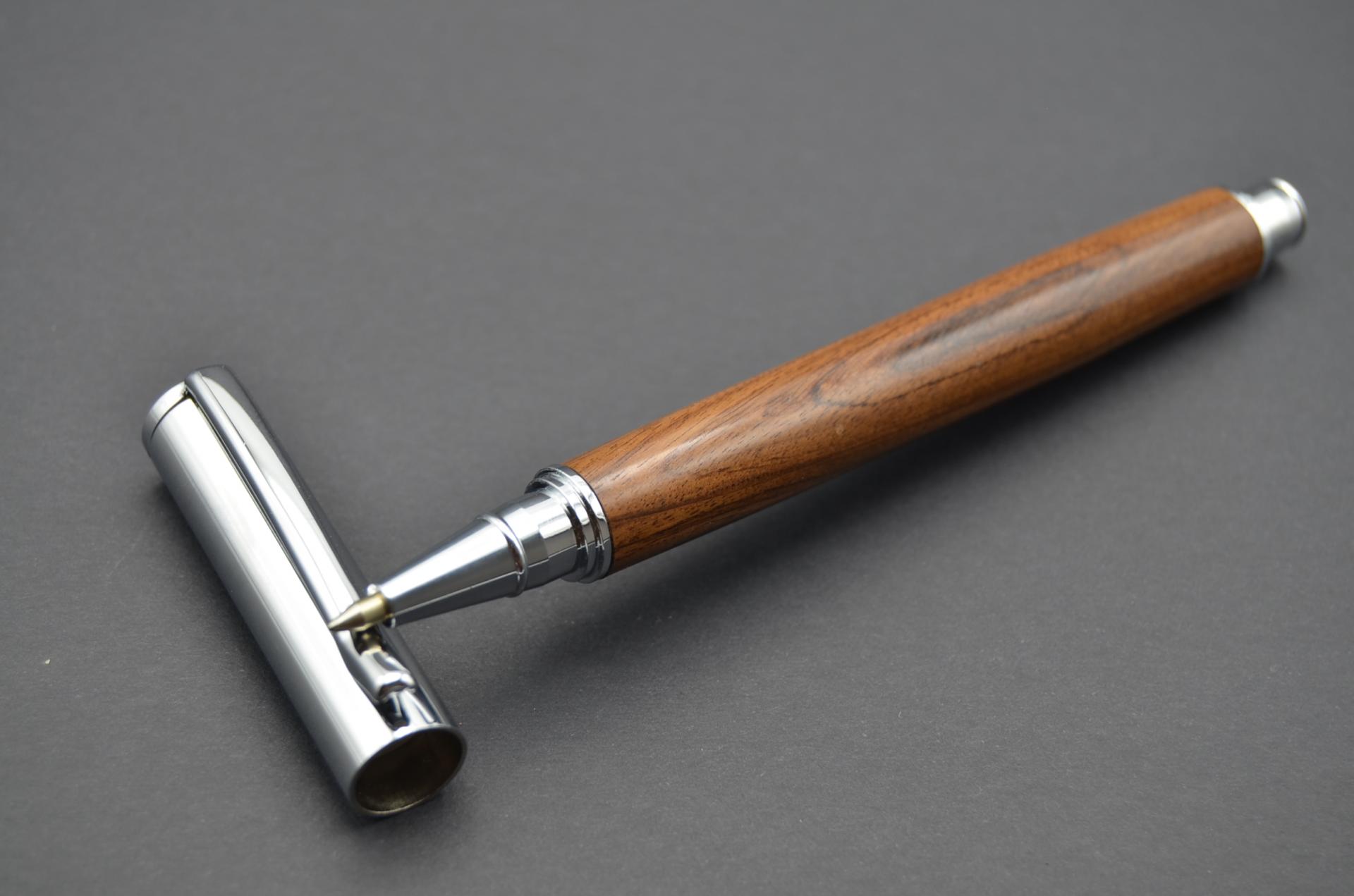 Bolígrafo artesanal torneado a mano con madera de Palo Santo procedente de brasil. Cierre a presión y acabado cromo.