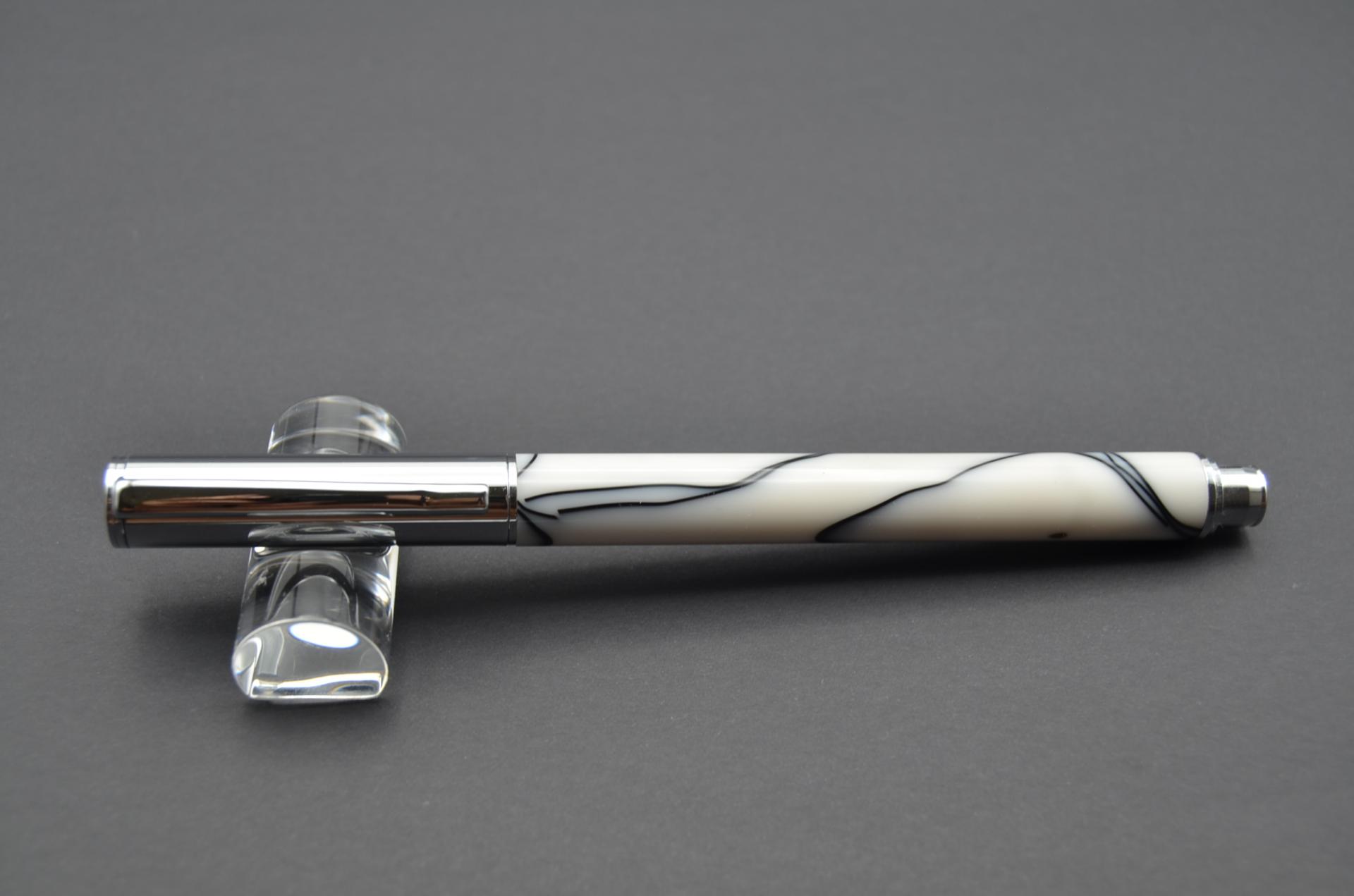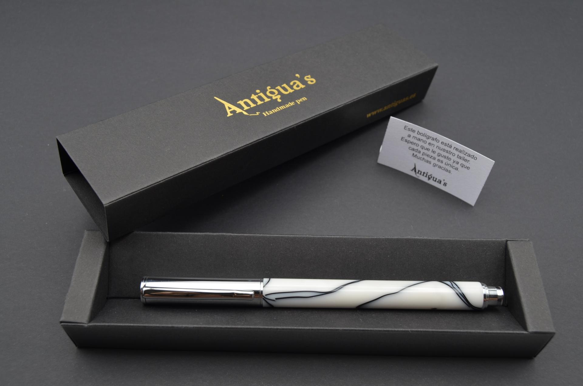 Bolígrafo artesanal torneado a mano con resina acrílica. Cierre a presión y acabado cromo.