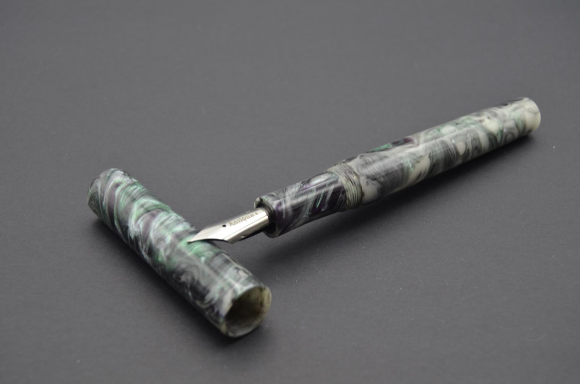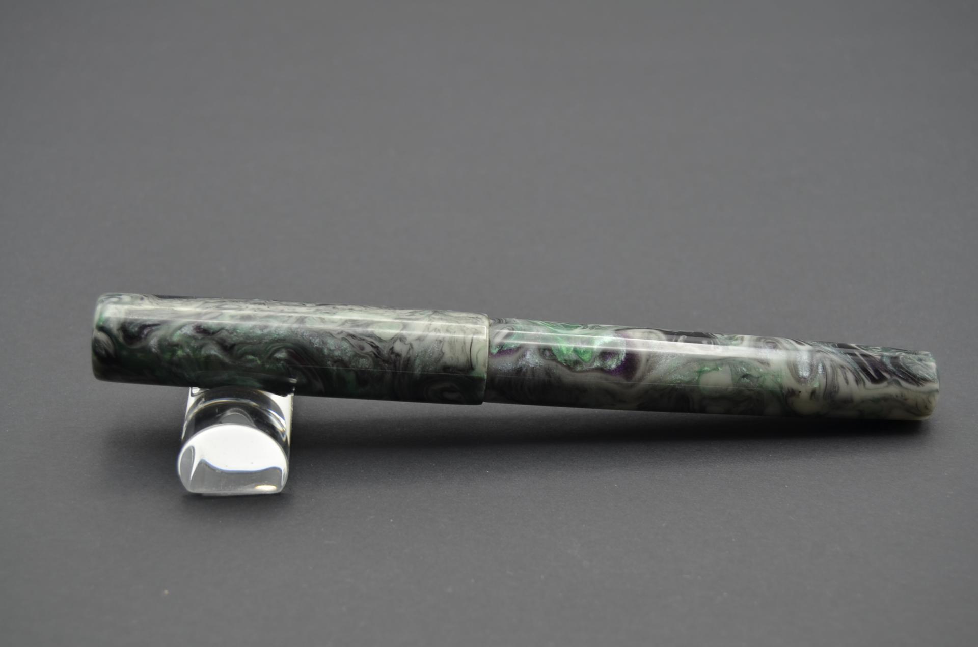 Modelo Hydra torneada a mano con alumilite realizado en nuestro taller, lleva instalado un plumín BOCK #6 de acero pulido.
