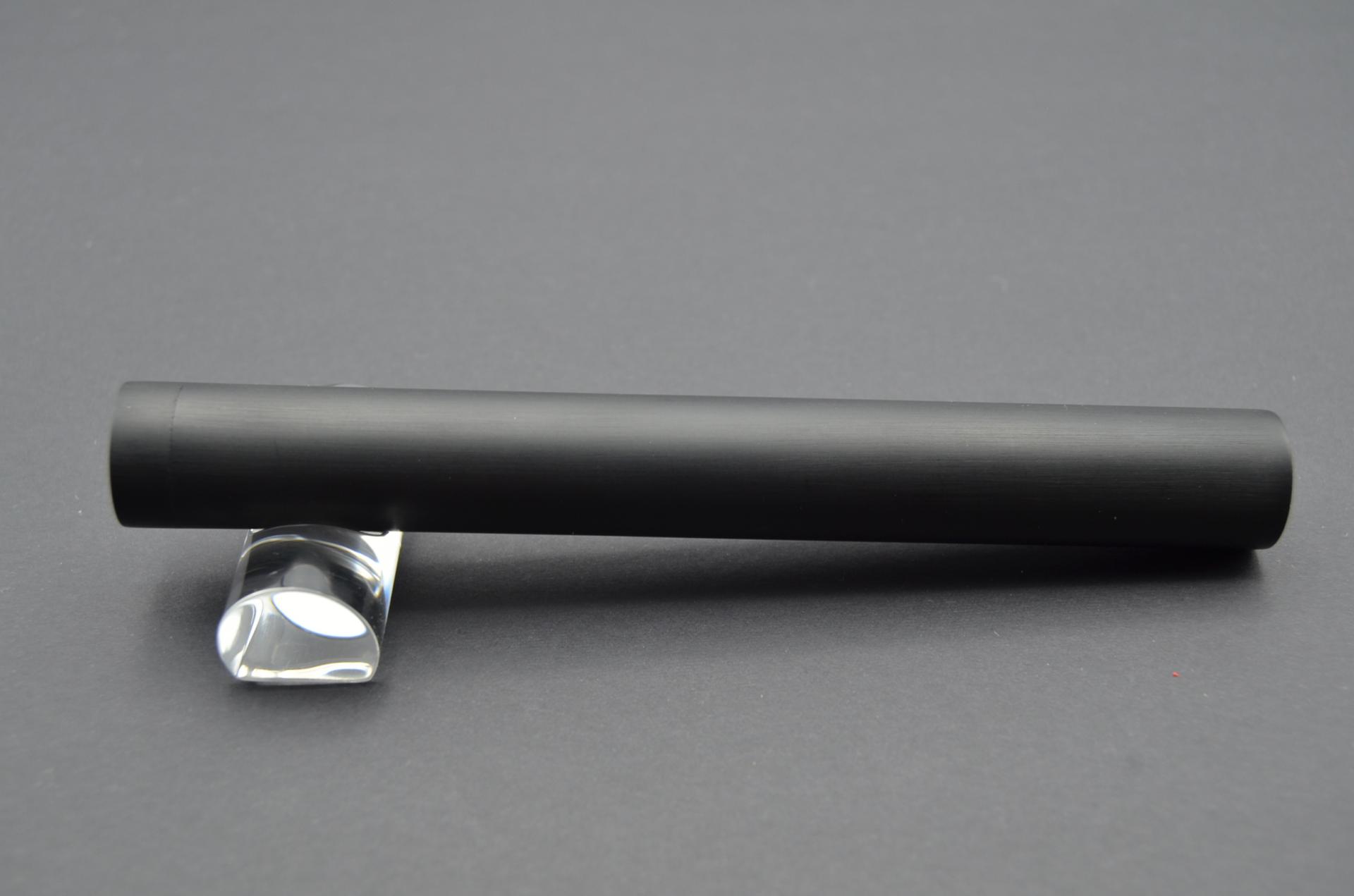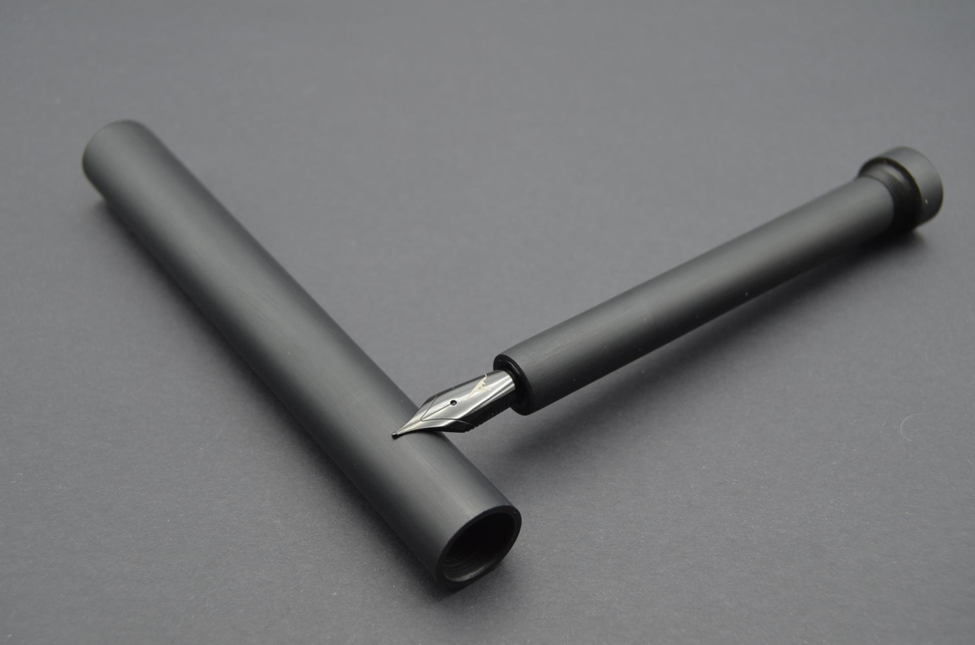 Estilográfica torneada a mano, el material es ebonita negra 1920 acabado black coal , lleva instalado un plumín JOWO #6 de acero
