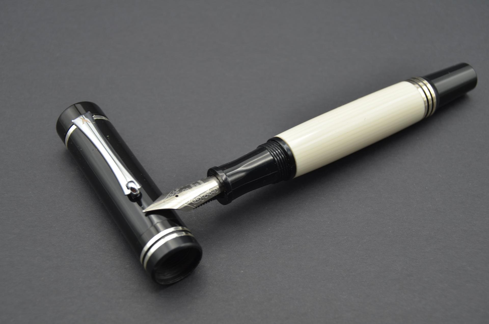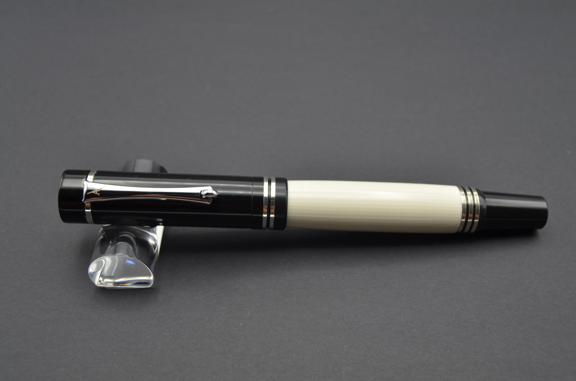 Estilográfica torneada a mano en resina acrílica, sistema de carga de tinta mediante convertidor o cartuchos universales, plumín de acero #6. F